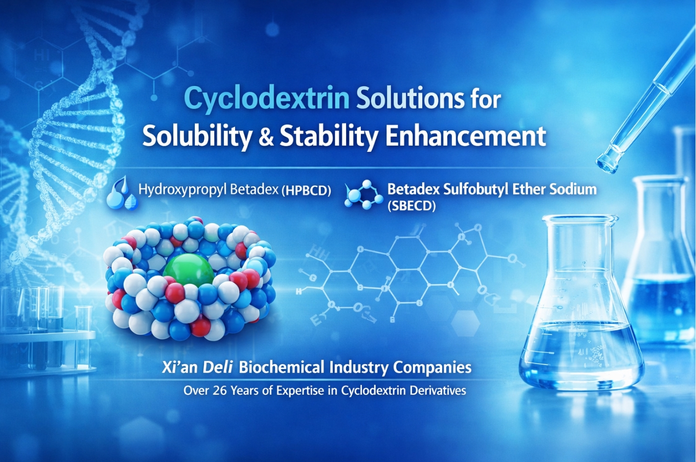 Ciklodekstrini so splošno priznani zaradi svoje sposobnosti izboljšanja topnosti in stabilnosti slabo topnih ali kemično občutljivih spojin. Ciklodekstrini in njihovi derivati so zaradi svoje edinstvene ciklične molekularne strukture postali pomembne funkcionalne pomožne snovi na farmacevtskih, kemijskih in sorodnih področjih formulacij. Kot odgovor na vse večje tehnične in regulativne zahteve je Xi’an Deli Biochemical dodatno izboljšal tehnično dokumentacijo in podporo za izdelke za svoje ključne derivate ciklodekstrina:hidroksipropil betadex (HPBCD) in betadex sulfobutil eter natrij (SBECD).