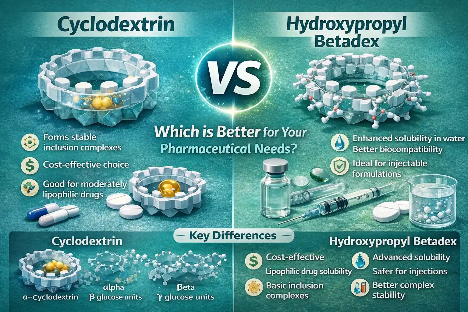 Ko gre za farmacevtsko uporabo, ciklodekstrin inhidroksipropil betadexoba sta na svoj način dobra za načine dostave zdravil. Standardni ciklodekstrini so dobri pri oklepanju molekul in so stroškovno učinkoviti. Po drugi strani se hidroksipropil betadex bolje topi v vodi in je bolj biokompatibilen. Izbira je odvisna od potreb vaše formulacije, s hidroksipropil betadeksom, ki zagotavlja napredno izboljšanje topnosti za težke molekule zdravil in ciklodekstrine, ki se odlikujejo v osnovnih inkluzijskih kompleksih.