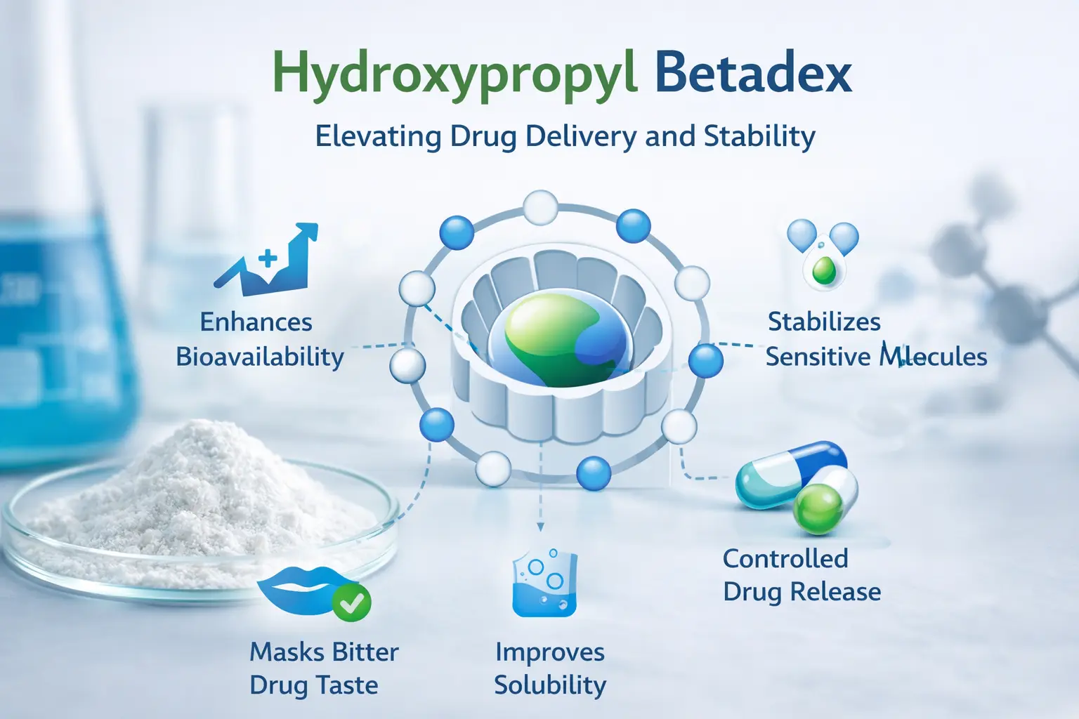 Z nadzorovanim sproščanjem lahko formulatorji spremenijo način sproščanja zdravil, ne da bi morali uporabljati zapletene metode dostave. Hydroxypropyl Betadex lahko spremeni način interakcije gostujoče molekule z gostiteljsko molekulo, da doseže vzorce takojšnjega, trajnega ali ciljanega sproščanja. Ta vsestranskost skrajša čas, potreben za ustvarjanje novih zdravil, in bolnikom olajša sledenje načrtom odmerjanja, kar izboljša skladnost.